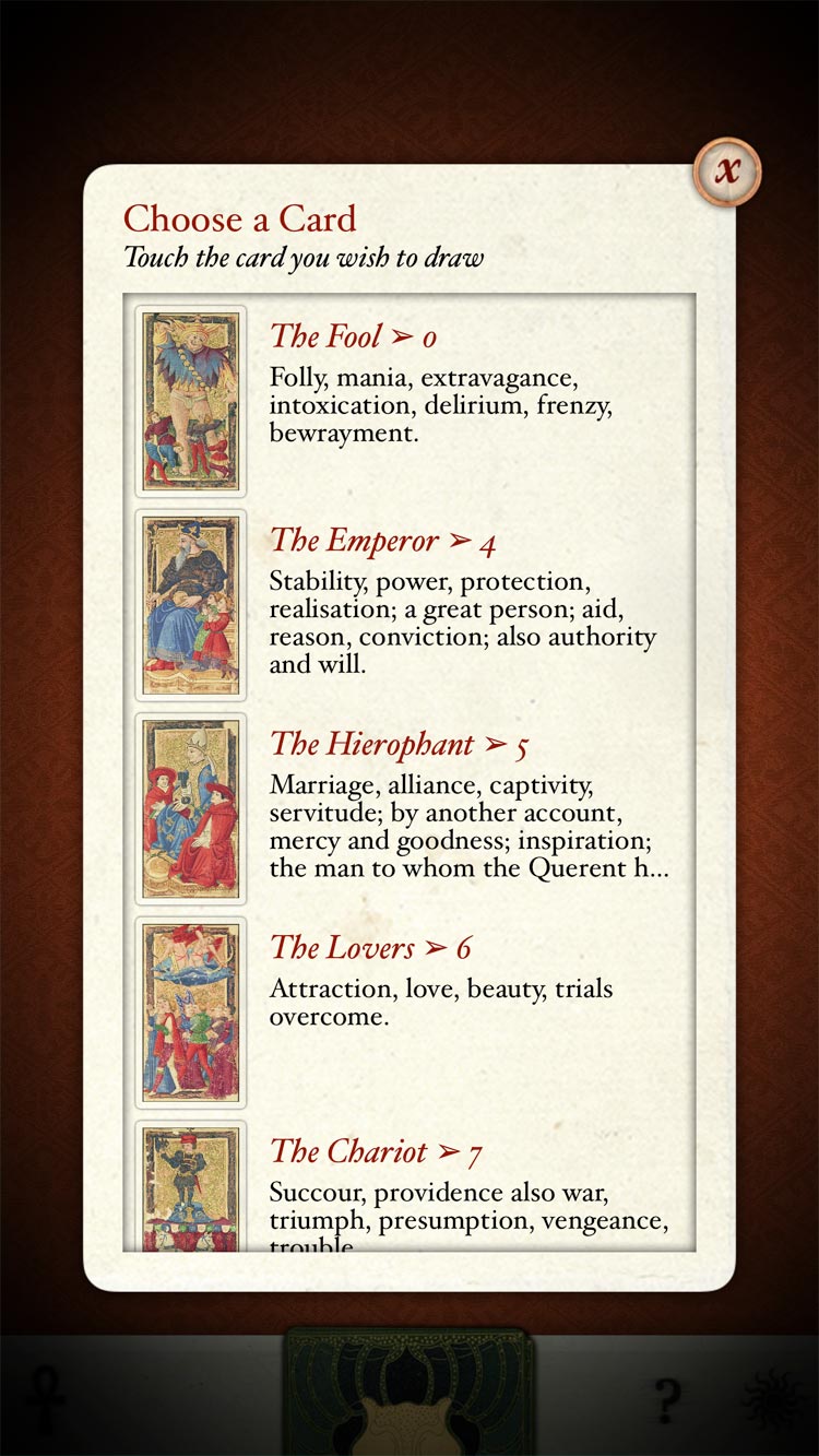 Beautiful Tarot is designed to run on devices of any size, including iPads; the videos below were recorded on an iPhone.